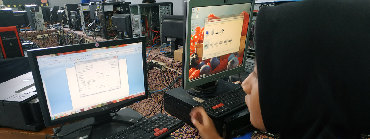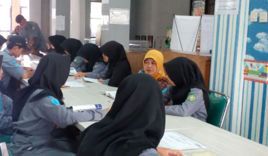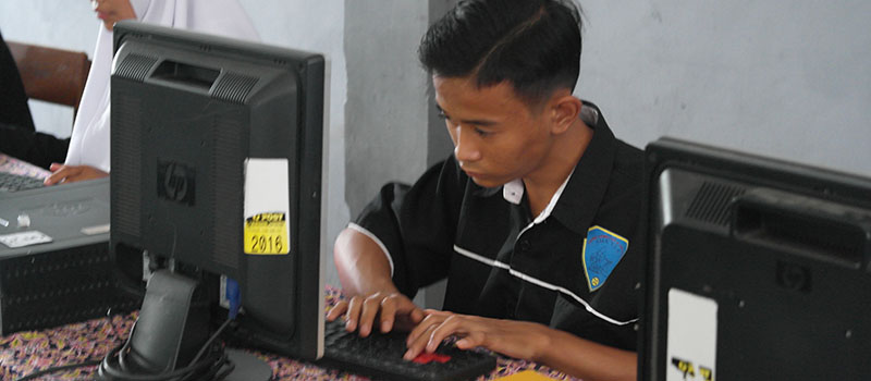 Lab komputer digunakan untuk praktik pada pembeljaran SIMDIG dengan rasio 1 siswa satu komputer